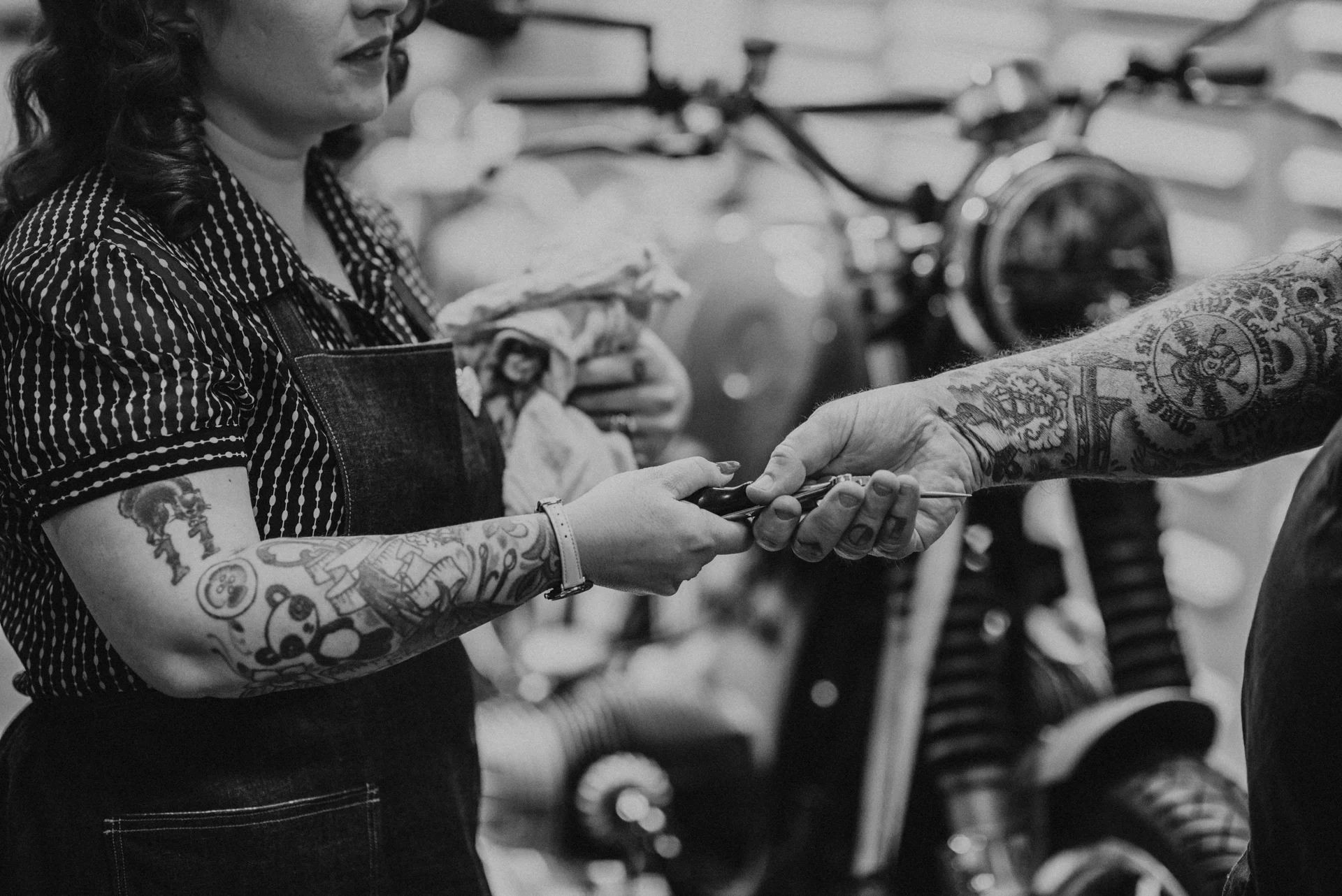 Rebecca is a lover of all things vintage and creative. She shares a similar demeanor with Chris and is a type of compassionate and giving that I haven’t really come across before. It’s clear that she is enamored with everything about her life and takes her passions very seriously. As much as she loves Bakelite, traveling, and her dogs, her love of motorcycles is an equal match. Her creative talents lend themselves to her role as the official Boxer Metal photographer, social media manager, customer service specialist, and all around badass, among other titles.